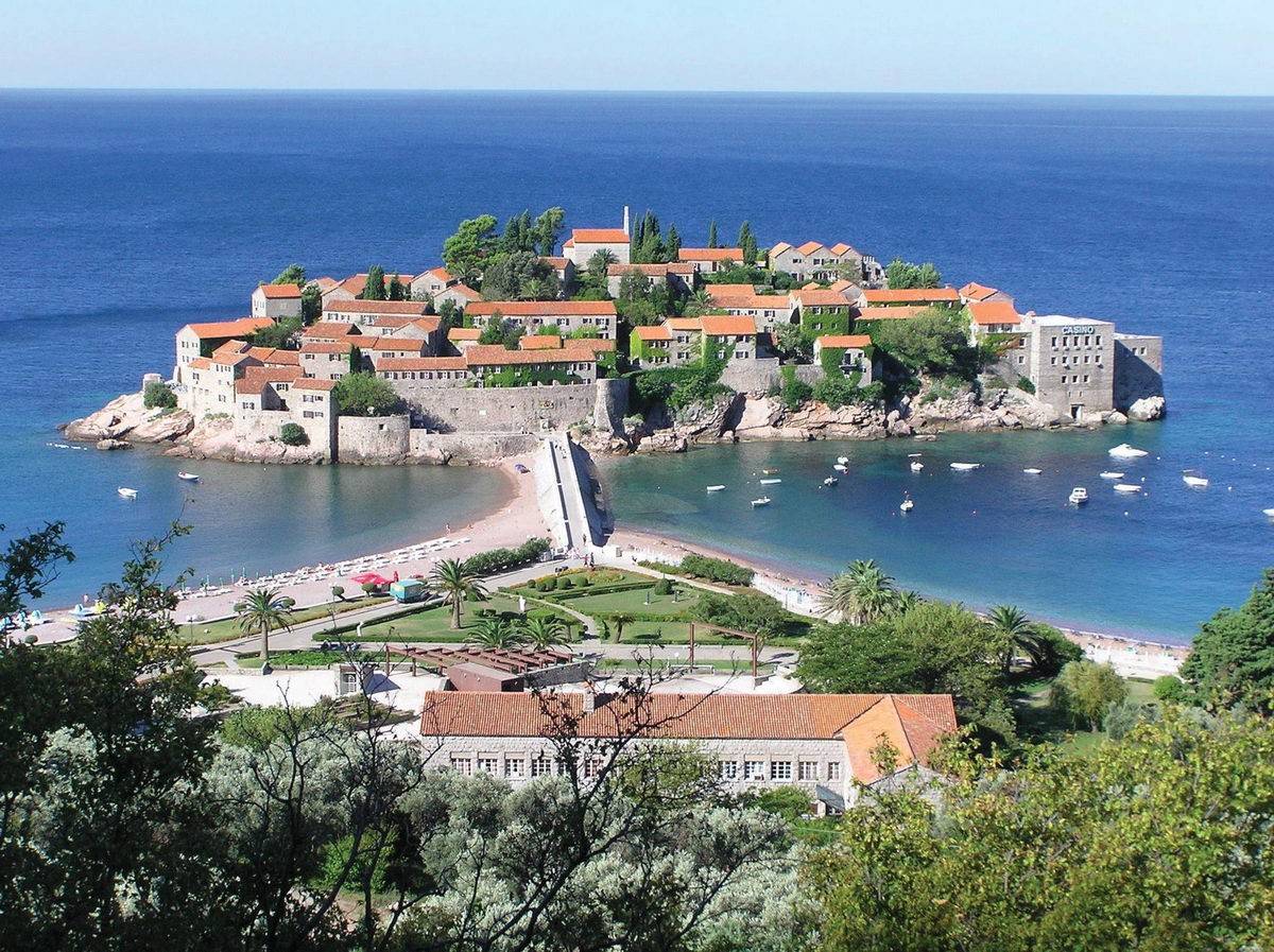 Nekada utvrđeno ribarsko naselje iz 15. vijeka, Sveti Stefan je 1950-ih pretvoren u elitno odmaralište koje su posjećivale zvijezde poput Sofije Loren i Elizabet Tejlor. Danas je luksuzni kompleks Aman Resorta koji čuva originalnu arhitekturu.